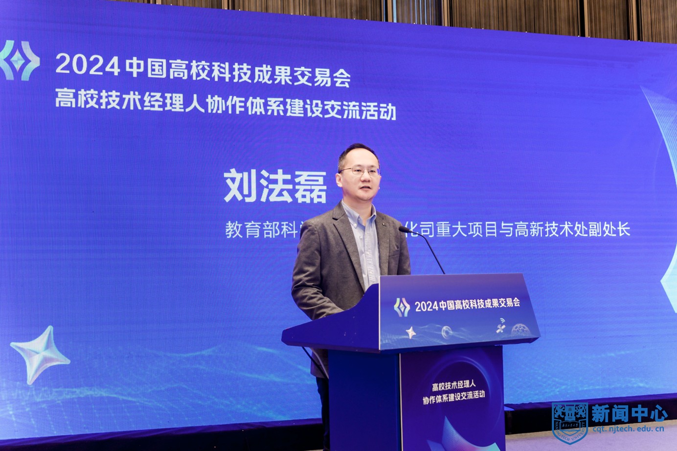 12月27日,由教育部科技教育與信息化司指導、教育部高等學??茖W研究發展中心主辦、我校承辦的2024中國科技成果交易會“高校技術經理人協作體系建設”交流活動在南京揚子江國際會議中心進行?;顒佑山逃扛叩葘W校科學研究發展中心副主任儲新宇主持。