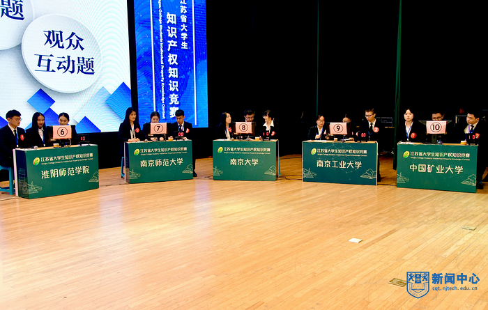 為貫徹落實十九屆五中全會精神,推動完善科技創新體制機制,加強知識產權保護,大幅提高科技成果轉移轉化成效。由江蘇省知識產權局、江蘇省教育廳、共青團江蘇省委主辦,國家知識產權培訓(江蘇)基地承辦的第四屆江蘇省大學生知識產權知識競賽決賽于11月24日晚在我校博雅堂隆重舉行。省知識產權局副局長張傳博,省教育廳科學技術與產業處處長張兆臣,省知識產權局宣傳教育處處長曹江,共青團江蘇省委高校工作部副部長盧奎,校黨委副書記崔益虎,黨委常委、黨委宣傳部部長張健,各職能部門負責人,10支參賽隊伍以及新華日報、江蘇經濟報等省內主流媒體記者與觀眾共計600余人參加了本次活動。