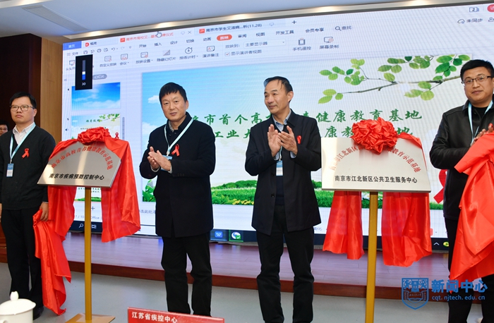 揭牌儀式上,我校牛生杰副校長致辭歡迎各參會代表蒞臨,南京市衛(wèi)生健康委員會副主任楊大鎖就南京市青年學(xué)生防艾工作提出要求。南京工業(yè)大學(xué)后勤保障處處長朱興同分享了我校艾滋病防控的各項(xiàng)舉措,并介紹了南京工業(yè)大學(xué)青春健康教育基地的建設(shè)情況。牛生杰副校長、朱興同處長,南京市疾控中心李成國副主任,江北新區(qū)公衛(wèi)中心董廣強(qiáng)副主任共同為南京市首個青春健康教育基地 ——南京工業(yè)大學(xué)青春健康教育基地揭牌。