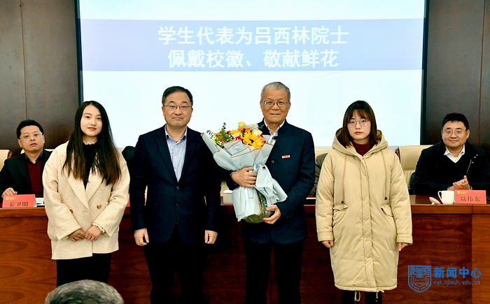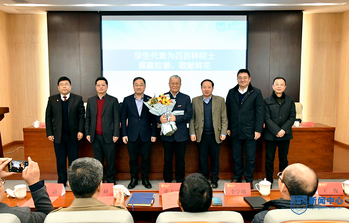 副校長李世收介紹了呂西林院士的簡歷和在建筑結構抗震及減震領域取得的學術成就,副校長凌祥為呂西林院士頒發了戰略科學家聘書,學生代表為呂西林院士佩戴校徽并獻花。