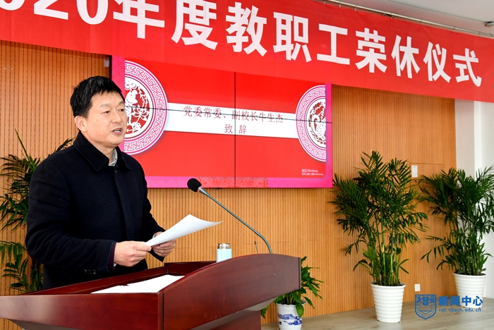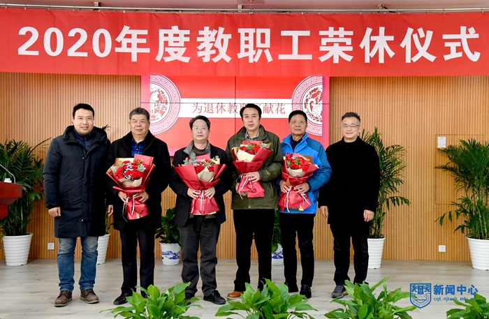 2020年12月30日下午,我校2020年度教職工榮休儀式在亞青教工之家舉行。校黨委常委、副校長牛生杰,校黨委常委、組織部長郭萬牛,校黨委常委、統戰部部長、黨辦主任劉大衛、校辦主任童毛弟、離退休黨工委書記張鋒、黨委宣傳部副部長馬明輝、人才資源部副部長徐德龍、教學事務部副部長錢曉明、研究生院招生就業辦公室主任顧永東出席儀式。2020年度各學院(部門)退休教職工、院(部門)領導、分工會主席以及有關人員參加了儀式,儀式由工會主席彭亞輝主持。
