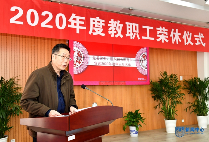 校黨委常委、組織部部長郭萬牛宣讀2020年度榮休教職工名單