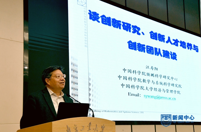 發展中國家科學院院士、國際系統與控制科學院院士、中國科學院杰出研究員、國家杰出青年科學基金獲得者汪壽陽講話