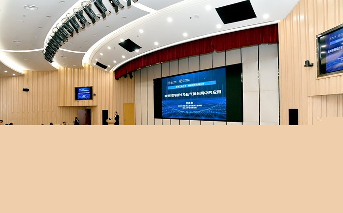 報(bào)告會(huì)上,任其龍?jiān)菏恳浴拔讲牧显O(shè)計(jì)及在氣體分離中的應(yīng)用”為題,介紹了如何利用分子科學(xué)的方法和手段在納米或分子尺度上探索分離工程的本質(zhì)規(guī)律,以實(shí)現(xiàn)對(duì)結(jié)構(gòu)相似物質(zhì)的精準(zhǔn)分離;通過(guò)金屬有機(jī)框架材料,實(shí)現(xiàn)氙、氪的分離以及低碳烴分離。隨后,彭孝軍院士以“智能分子工程及在光學(xué)材料中的應(yīng)用”為題,介紹了智能分子工程的涵義,并結(jié)合自身的研究經(jīng)歷和典型的研究案例,為師生們展示了染料智能分子在耐候性信息打印染料、腫瘤靶向的熒光成像染料、癌癥光/聲動(dòng)治療染料等的強(qiáng)大應(yīng)用能力和廣闊發(fā)展前景。