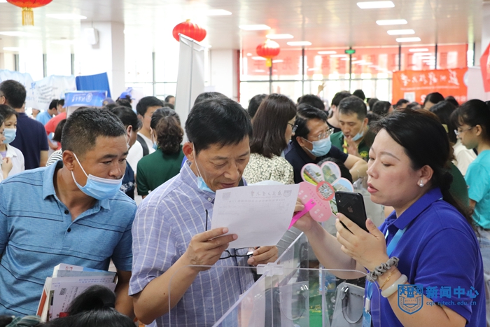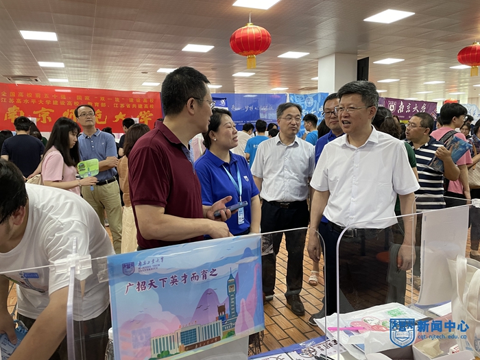 在中華中學招生宣傳現場,芮鴻巖書記、凌祥副校長與中華中學有關負責人進行了親切交流,介紹了我校歷史沿革、學科特色、人才培養、師資力量、校園文化和近年來取得的成就,并與考生和家長進行了深入的交流。芮鴻巖書記親切慰問了負責中華中學招生宣傳的生工學院師生招生志愿者,詳細詢問了招生進展情況,叮囑大家要勞逸結合,注意疫情防控,以飽滿的熱情和精神狀態投入招生宣傳工作。