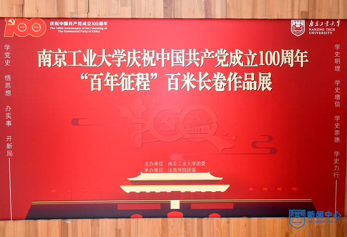 作為我校開展“永遠跟黨走”慶祝中國共產黨成立100周年主題宣傳教育的重要活動之一,本次藝術作品展由黨委宣傳部、校團委主辦,藝術設計學院、法政學院承辦,分為“追尋紅色記憶,獻藝百年風華”手繪作品展和“百年征程”百米長卷作品展兩部分。作品征集持續近三個月,經專家評審,遴選出145件不同類型的師生作品展出。“‘追尋紅色記憶,獻藝百年風華’手繪作品展”以“新民主主義革命時期”“社會主義革命和建設時期”“改革開放和社會主義現代化建設新時期”和“中國特色社會主義新時代”四個階段為序依次布展,“百年征程百米長卷作品展”分為“開天辟地”“苦難與輝煌”“社會主義好”“春天的故事”和“邁進新時代”五個篇章。