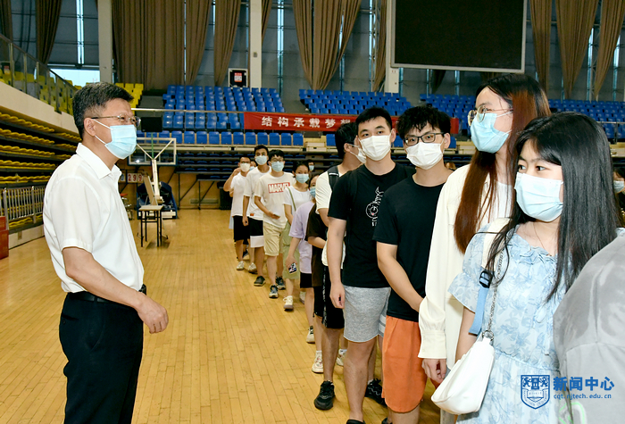 當晚,校領導芮鴻巖、崔益虎、邢衛紅、凌祥等來到檢測現場了解工作開展情況,并向所有醫護人員和志愿者師生們表示慰問、感謝,希望大家在做好自我保護的同時努力工作,齊心協力確保檢測工作安全、高效、平穩、有序開展。