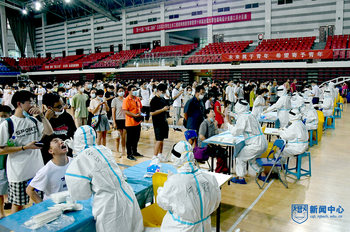 按照省市疫情防控部門統一部署,為進一步織密織牢校園聯防聯控防疫網絡,保障廣大師生員工的健康安全,7月22日18:00起,我校在江浦校區行健體育館為13180名在校師生進行核酸檢測。