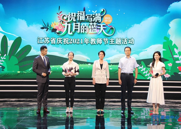 9月9日晚,江蘇電視臺教育頻道全程播放了江蘇省教育廳主辦的“祝福寫滿九月的藍天”——江蘇省慶祝2021年教師節主題活動,多元展示了江蘇教育改革發展和教師隊伍建設的顯著成績,宣傳以德育人的教師典型。