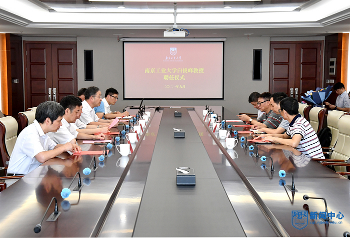 會上,凌祥副校長宣讀了聘任決定,對白俊峰教授的學術經歷和主要成就作了介紹,并對白教授的加盟表示熱烈歡迎。化學與分子工程學院院長楊文忠介紹了學院及學科的發展情況。隨后,人事處黃鎖明處長與楊文忠院長、白俊峰教授分別代表學校、學院和個人簽訂聘任協議。學生代表為白教授佩戴校徽、獻花。白俊峰教授在感言中表示很榮幸能夠加盟南京工業大學,并簡要匯報了未來工作計劃,期待能夠為學校做出更大貢獻。
