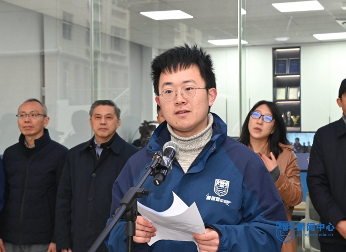 張健部長主持啟用儀式,并簡要回顧了學(xué)校新媒體平臺建設(shè)、融媒體宣傳推進(jìn)、“互聯(lián)網(wǎng)+”工作格局構(gòu)建過程,介紹了融媒體中心所取得的成績以及組織架構(gòu)、運(yùn)行機(jī)制。朱琳老師代表融媒體中心指導(dǎo)老師發(fā)言,程思涵同學(xué)代表學(xué)生團(tuán)隊發(fā)言。