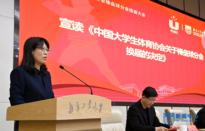 程杰主任宣讀《中國大學生體育協會關于棒壘球分會換屆的決定》。經中國大學生體育協會2021年第二次常務理事會審議,決定棒壘球分會換屆,新的掛靠單位為南京工業大學。