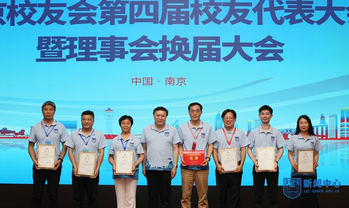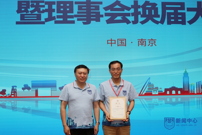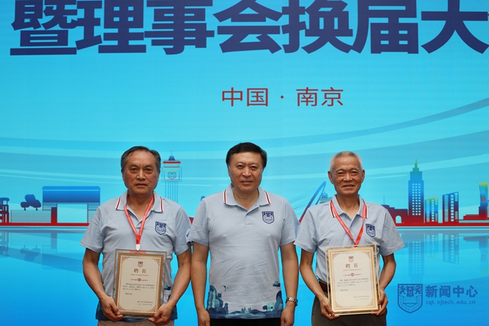 在與會代表熱烈的掌聲中,喬旭校長為第四屆理事會榮譽會長張大本校友、賈德裕校友頒發聘書,為第四屆理事會會長王雪根校友頒發聘書。喬旭校長還代表學校向王雪根會長遞交了2022屆在南京地區就業的新校友名冊。