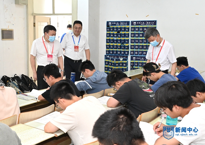 7月4日上午,我校全面進入本學期考試周,校黨委書記芮鴻巖,校長喬旭,黨委常委、副校長陸偉東一早就來到了仁智樓進行巡視檢查。