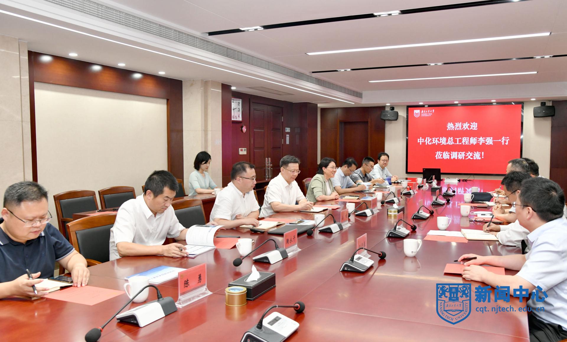 9月2日,中化環境控股有限公司總工程師李強一行來校調研交流。校長蔣軍成、副校長邢衛紅在明正樓與來賓座談。