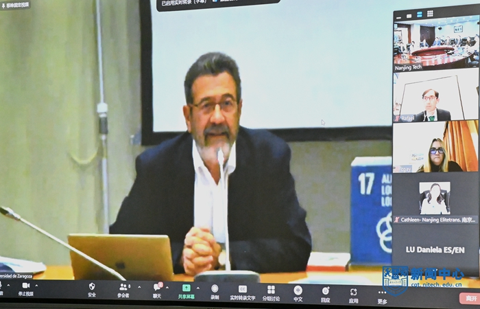 10月4日下午,南京工業(yè)大學(xué)—薩拉戈薩大學(xué)中外合作辦學(xué)項目在線簽約儀式在明正樓604會議室舉行。我校校長蔣軍成,副校長凌祥、陸偉東,薩拉戈薩大學(xué)校長何塞·安東尼奧·馬約拉爾、副校長弗朗西斯科·貝爾特蘭、副校長何賽·安和·卡斯迪亞諾斯,中國西班牙商會主席路易斯·盧比奧出席儀式。簽約儀式由凌祥副校長主持。