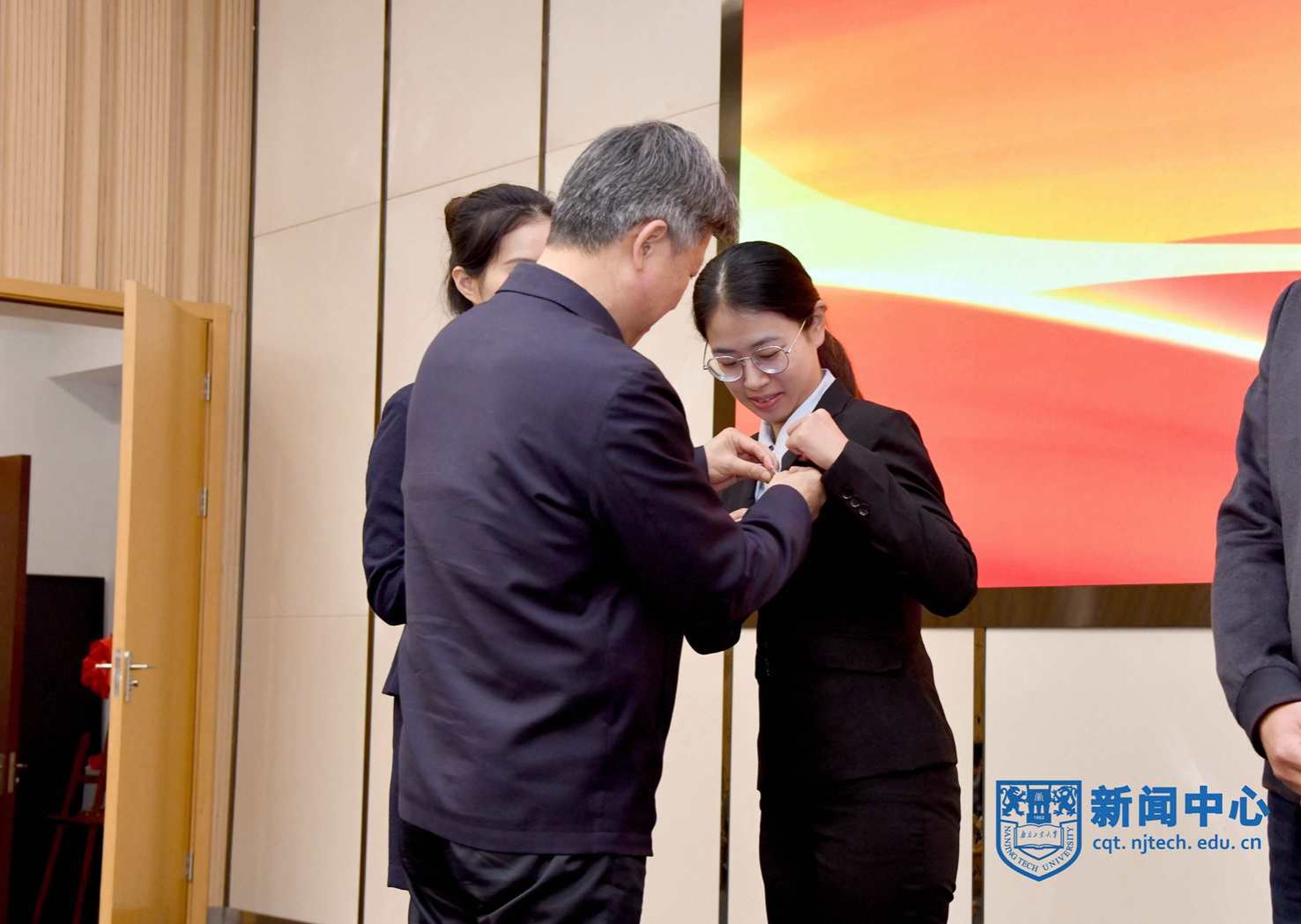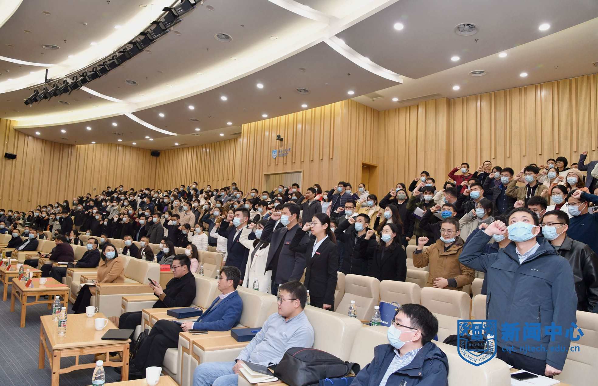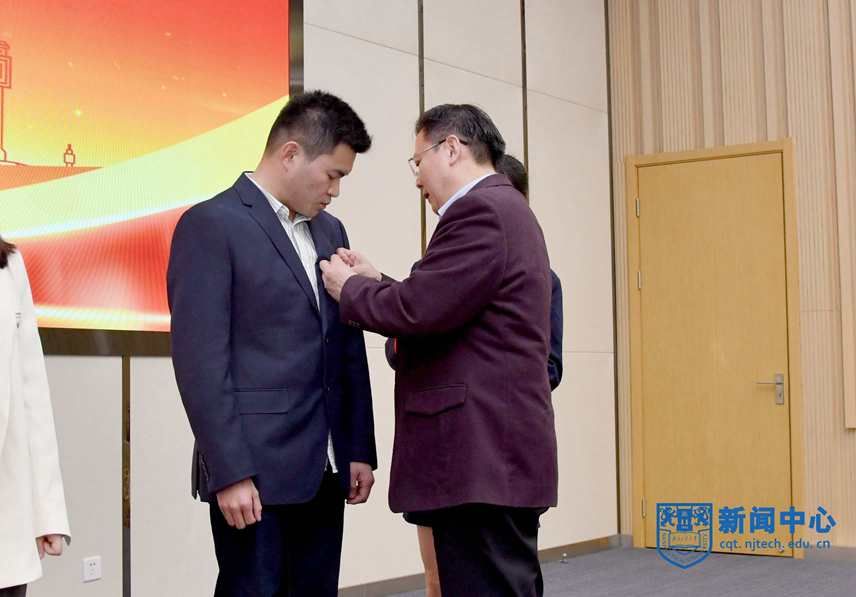 會上,四位新進教師代表上臺接受了佩戴校徽儀式;新進教師代表安全科學與工程學院卜亞杰老師帶領大家進行了入職宣誓;新進教師代表生物與制藥工程學院江蘇特聘教授孫睿巖老師作分享發言。
