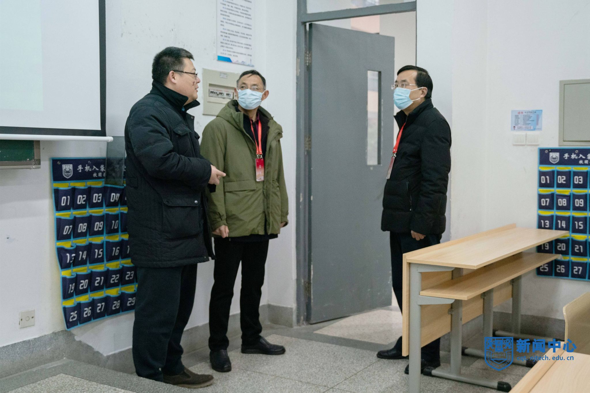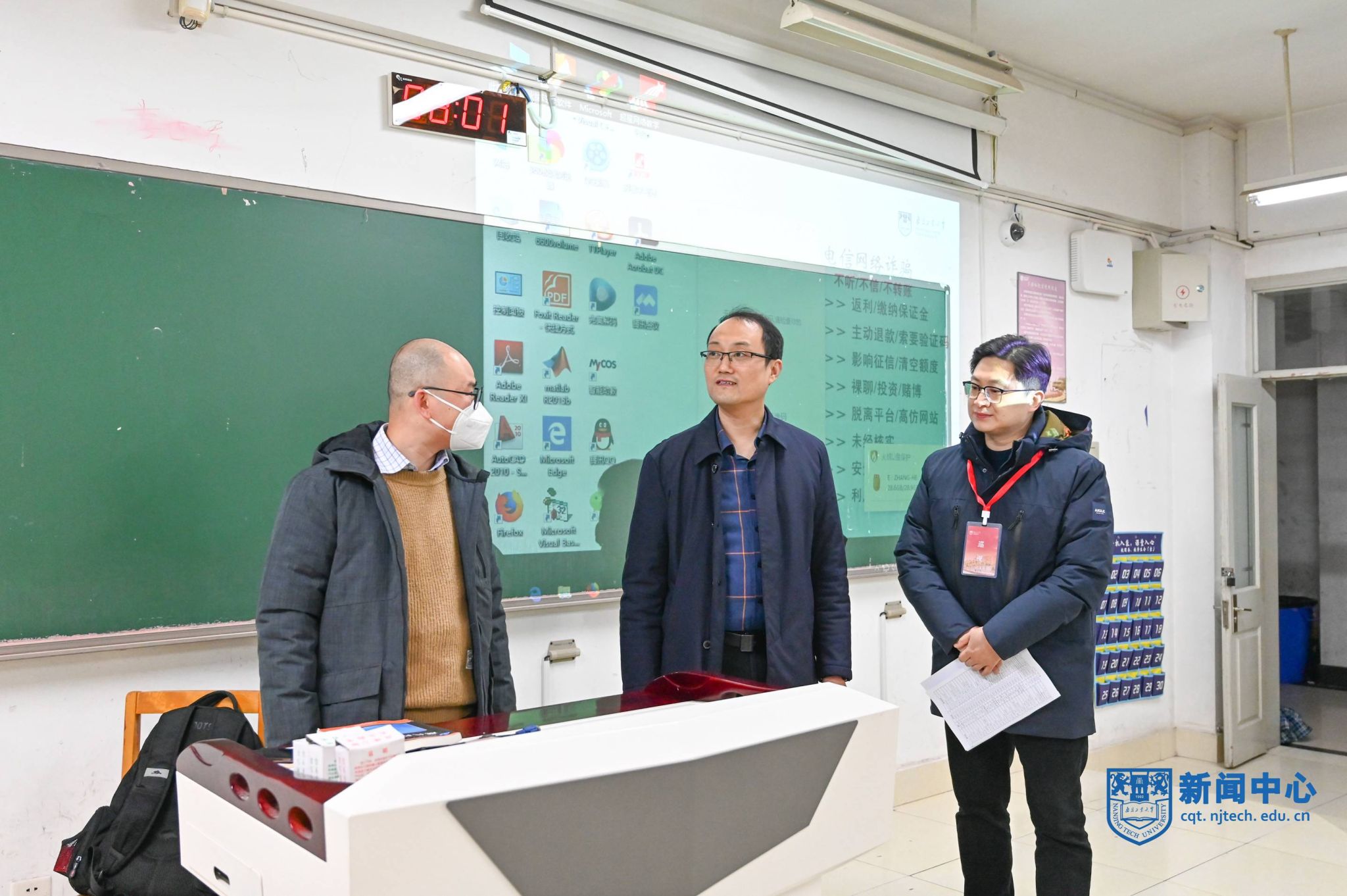 芮鴻巖書記、蔣軍成校長、陸偉東副校長一行在厚學(xué)樓通過智慧教學(xué)運(yùn)行及遠(yuǎn)程電子督導(dǎo)平臺(tái)進(jìn)行在線巡課、聽課,就教學(xué)數(shù)字化建設(shè)、教育教學(xué)改革等工作提出指導(dǎo)性意見,并做了相關(guān)工作部署。在課間休息時(shí),詳細(xì)關(guān)心詢問師生身心健康狀況,交流了解任課教師到崗、學(xué)生出勤、備課授課、教學(xué)設(shè)施運(yùn)行及環(huán)境等情況,并提出意見和建議。隨后走進(jìn)上課教室,一邊認(rèn)真聽課,一邊詳細(xì)記錄,對(duì)課堂教學(xué)做出客觀評(píng)價(jià)。