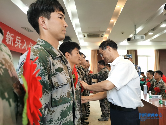 會上,人武部季宜敬副部長介紹了今年我校大學生參軍入伍的情況。與會領導為入伍大學生佩戴紅花、頒發紀念品。入伍大學生陳斯元、趙家偉分別作為畢業生和在校生代表,向與會領導、戰友匯報了自己的入伍初心和集訓收獲,他們紛紛表態,要牢記軍人“流血流汗不流淚,掉皮掉肉不掉隊”的精神,服從指揮,刻苦訓練,報效祖國,為校爭光。