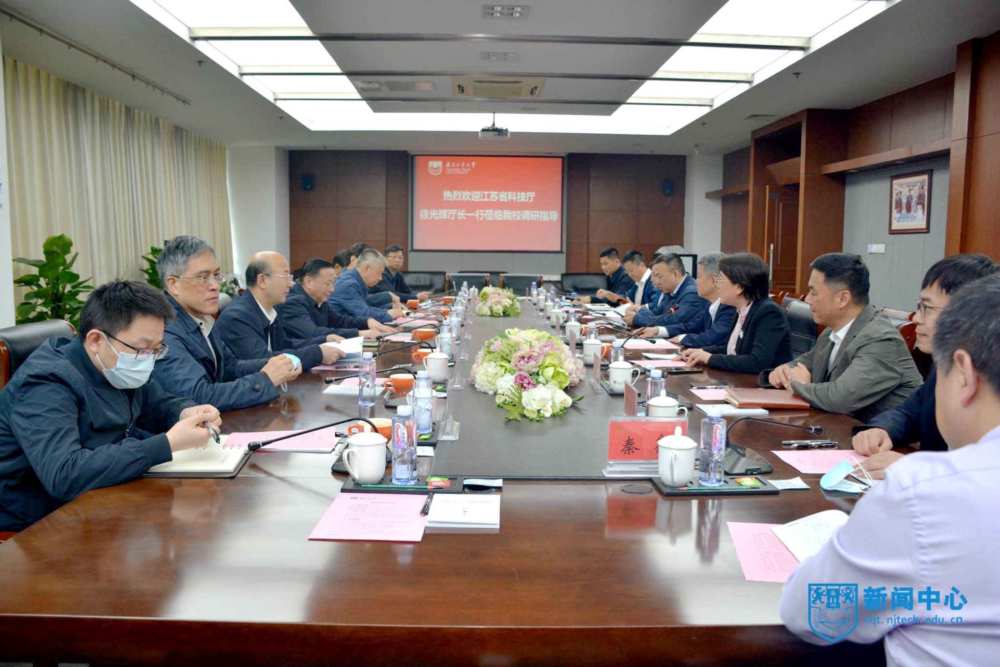 5月9日,省科技廳黨組書記、廳長徐光輝來我校技術轉移中心開展專題調研。省科技廳二級巡視員景茂,省生產力促進中心主任、黨委書記趙志強,校黨委書記芮鴻巖、副校長邢衛紅出席活動。