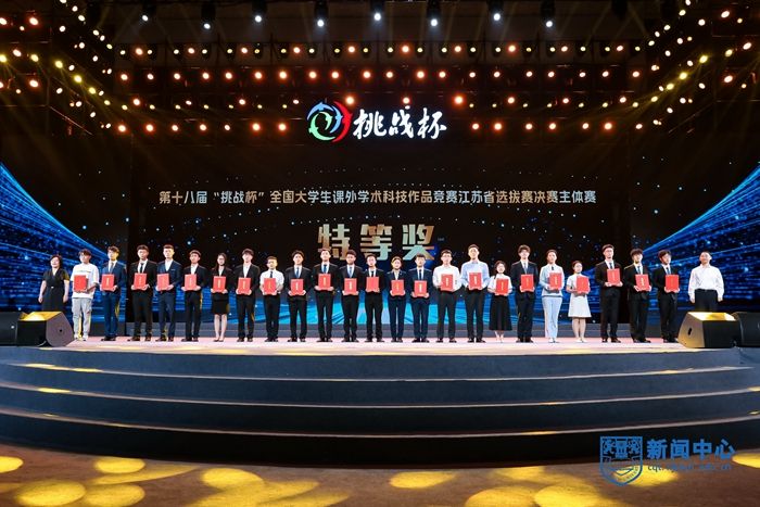 5月26日,第十八屆“挑戰杯”全國大學生課外學術科技作品競賽江蘇省選拔賽決賽在常州大學體育館拉開帷幕,699件入圍作品同臺競技。我校報送的10件作品全部入圍主體賽終審決賽,斬獲特等獎3項,6件作品成功推報國賽,捧得“優勝杯”,在入圍決賽作品數量、獲獎層次、獲獎數量均取得新突破。