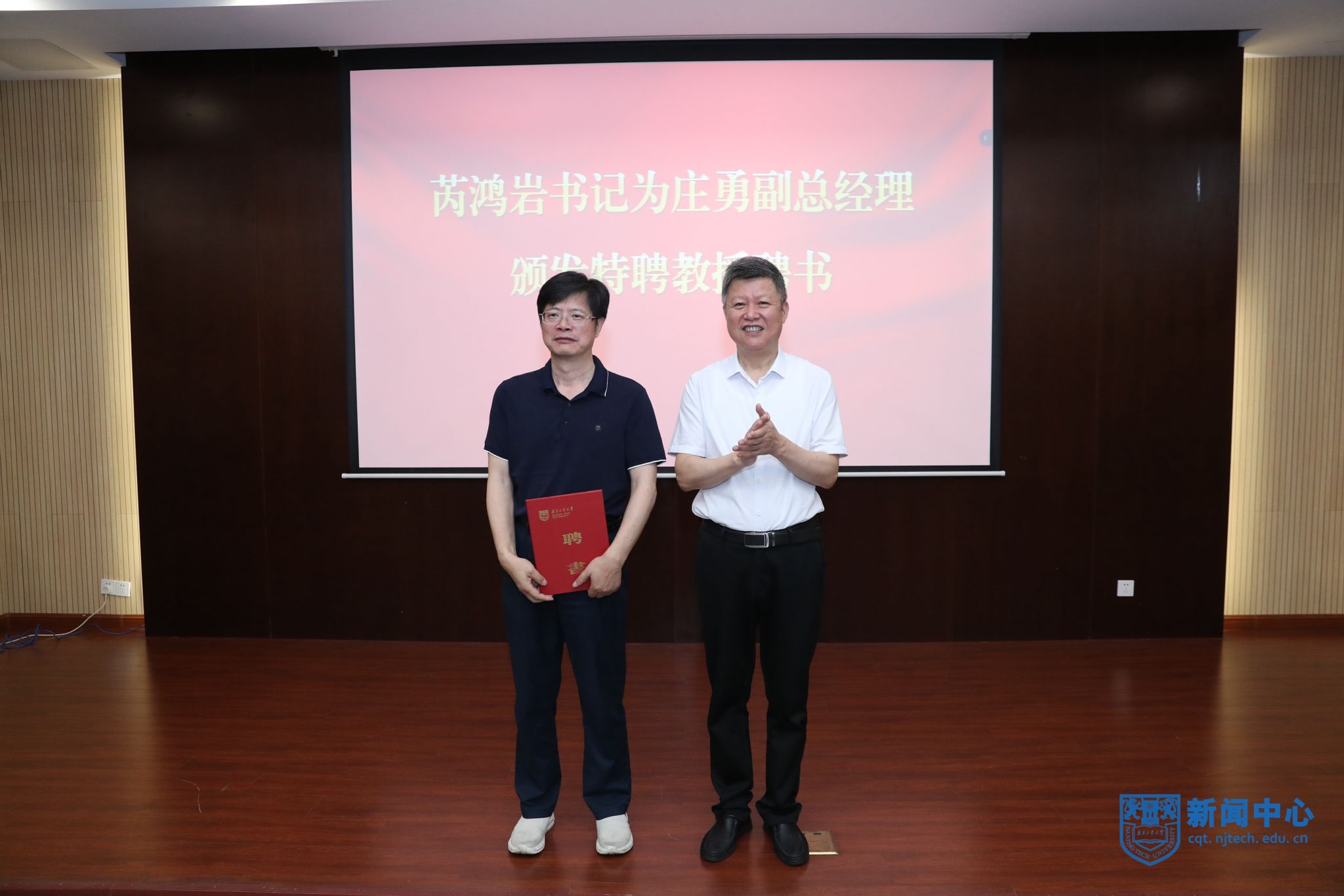 人事處副處長楊洪俊介紹高宗余院士、王仁貴大師、莊勇副總經理的個人簡介及主要成就。芮鴻巖書記為高宗余院士頒發戰略科學家聘書,為王仁貴大師、莊勇副總經理頒發特聘教授聘書。學生代表為三位專家佩戴校徽并獻花。