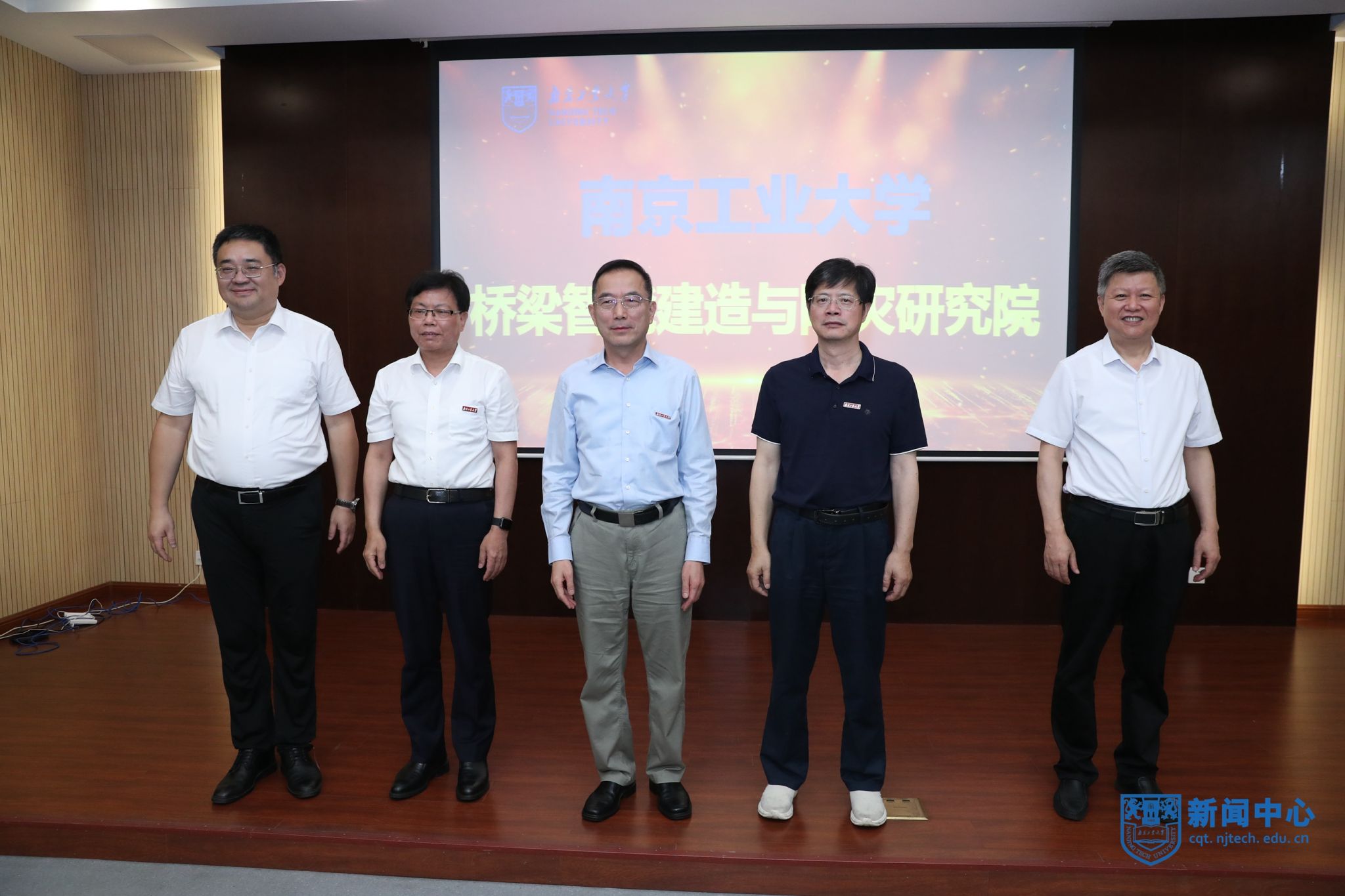 與會領導和專家共同為“南京工業大學橋梁智能建造與防災研究院”揭牌。